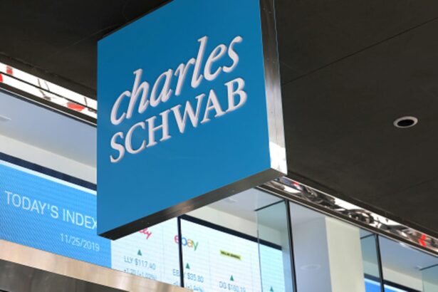 Ticker seen at Charles Schwab's headquarters located at 211 Main St. Seen on Monday, November 25, 2019 in San Francisco, California (photo of Liz Hafalia/The San Francisco Chronicle through Getty…